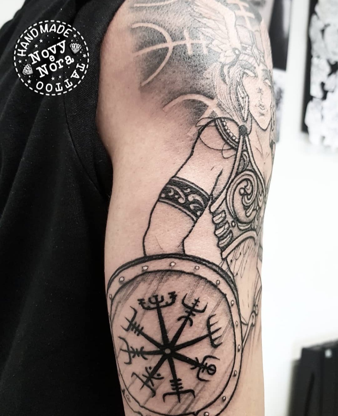 Novytattoo Handmade On Twitter Goddess Freya Freya Valkyrie Handmadetattoostudio Celtictattoo Celtic Vegvisir Vegvisirtattoo Onestep Workinprogress Tattoo Nordicstyle Goddessfreya Tattooedmen Inkedman Ragnarok Freia Ink Art Carpi